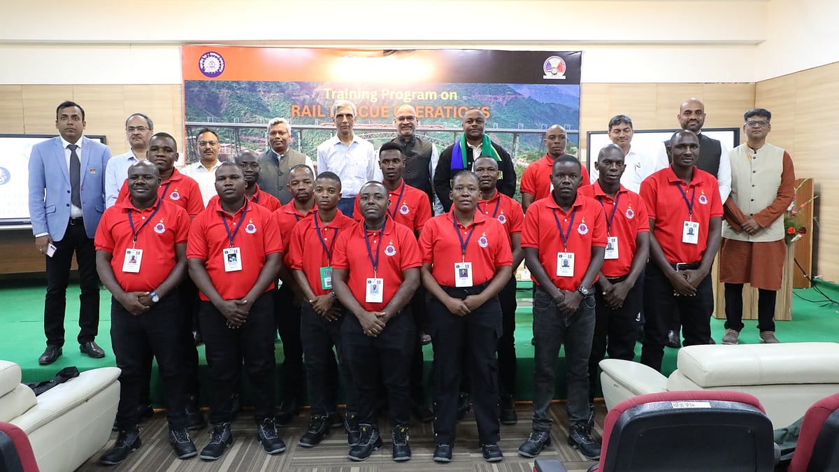 The Tanzanian team of trainees under the leadership of Mr. Abraham G. Ntezidyo shall be given exposure to challenging accident scenarios involving bridges, water bodies etc. apart from other typical situations. Repeated practice on Virtual and Augmented Reality modules in firefighting and trauma Management is also provided to sharpen their skills and responses. Rigorous exercises on Railway coaches are integrated in the physical training program to accelerate the learning curve. They will be co-practicing with the elite personnel of NDRF and RPF, undergoing integrated training in the specialised Railway Module at IRIDM.