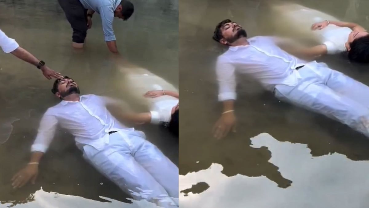 A recent viral video has captured this shift perfectly. The clip shows a couple lying motionless in shallow water, eyes closed, as photographers carefully adjust their positioning to get the “perfect” shot. The surreal setup has left the internet both amused and confused, sparking a wave of reactions across social media.