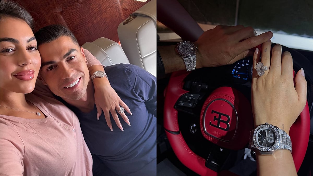 The photo, clicked inside Ronaldo’s ultra-exclusive Bugatti Centodieci, gave a close-up of their enviable watch collection. The footballer sported a dazzling Patek Philippe timepiece valued at approximately $720,000, while his fiancée complemented the bling with her own diamond-studded Patek watch, estimated at around $450,000, as reported by The Big Lead.