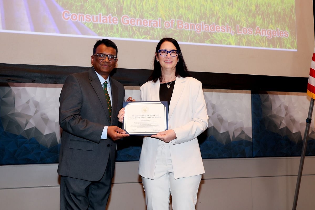 লস অ্যাঞ্জেলেসে বাংলাদেশের কনসাল জেনারেল কাজী মুহম্মদ জাবেদ ইকবাল তাঁর বক্তব্যে মুক্তিযুদ্ধের শহীদ, বীর মুক্তিযোদ্ধা এবং নির্যাতিত মা-বোনদের প্রতি শ্রদ্ধা নিবেদন করেন। স্বাধীনতার তাৎপর্য ও ঐতিহাসিক গুরুত্ব তুলে ধরে তিনি বলেন, বাংলাদেশের ধারাবাহিক আর্থসামাজিক অগ্রগতি, অবকাঠামো উন্নয়ন ও প্রযুক্তিনির্ভর অগ্রযাত্রা দেশের মান উন্নয়নে গুরুত্বপূর্ণ ভূমিকা রাখছে। প্রধানমন্ত্রী তারেক রহমানের দক্ষ নেতৃত্বে বর্তমান সরকার দেশের জনগণের কল্যাণে একটি উন্নত, সমৃদ্ধ ও মর্যাদাশীল বাংলাদেশ গড়ে তোলার লক্ষ্যে নিরলসভাবে কাজ করে যাচ্ছে। বাংলাদেশ ও যুক্তরাষ্ট্রের মধ্যকার বহুমাত্রিক অংশীদারত্ব আরও গভীর করার ওপর জোর দিয়ে তিনি শান্তি, অন্তর্ভুক্তিমূলক উন্নয়ন ও আন্তর্জাতিক সহযোগিতায় বাংলাদেশের দৃঢ় অঙ্গীকার পুনর্ব্যক্ত করেন।
