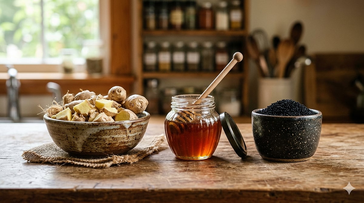 আদা, মধু ও কালিজিরা—এই তিন উপাদানই প্রদাহ কমাতে সাহায্য করে। আমাদের রোগ প্রতিরোধক্ষমতার ওপর ইতিবাচক প্রভাব ফেলতে পারে। সকালে এ ধরনের উপাদান গ্রহণ করলে অনেকে সতেজ অনুভব করেন।