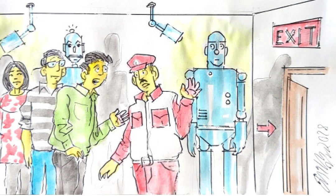 —এই রোবটটা দেখুন, আঠারো শতকের একটি রোবট। এটা কথা বলতে পারত না। তবে হাঁটতে পারত, হ্যান্ডশেক করতে পারত, হাগ করতে পারত...আর এই রোবটটা দেখুন, এ কথা বলা রোবট...আর এই রোবটটা মানুষের মতো চিন্তা করতে পারত। বলতে বলতে গাইড দর্শকদের মিউজিয়ামের এক্সিট ডোরের কাছে দাঁড়ানো শেষ রোবটটার কাছে চলে এল।
